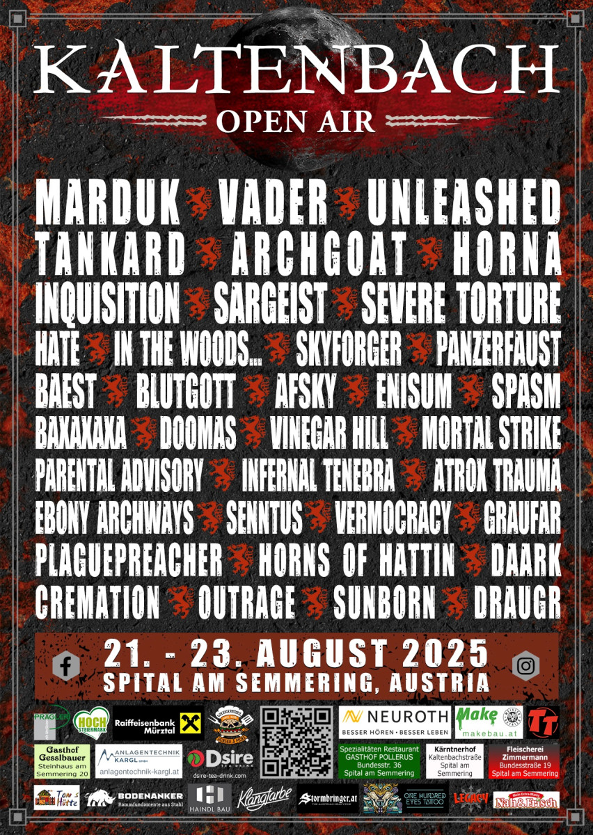 Das Kaltenbach Open Air – Österreichs renommiertestes Extreme Metal Festival – geht von Jahr zu Jahr in der steirischen Gemeinde Spital am Semmering über die Bühne. Vor der einzigartigen Kulisse des Kaltenbachgrabens sorgen Metal-Fans aus Nah und Fern drei Tage lang für ...